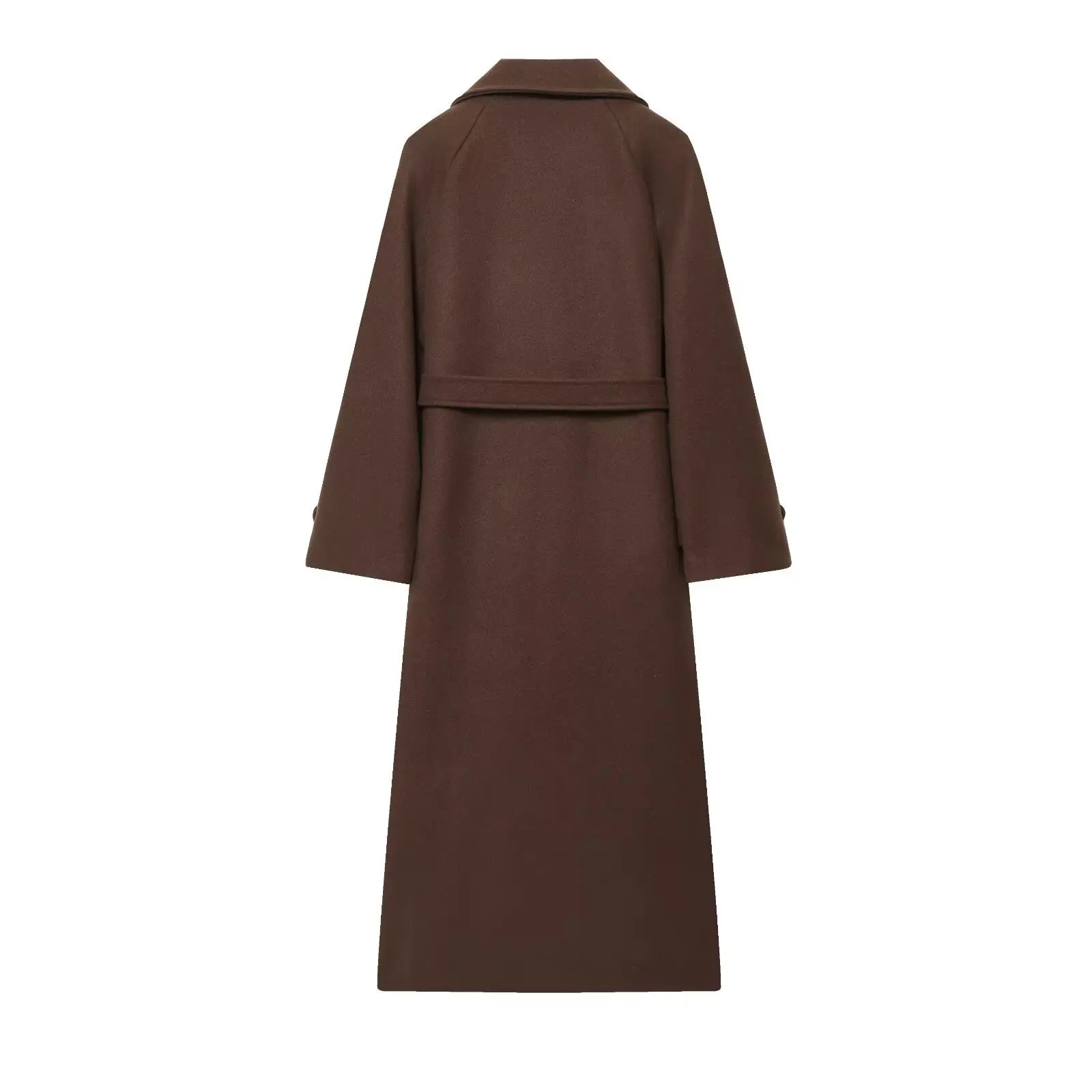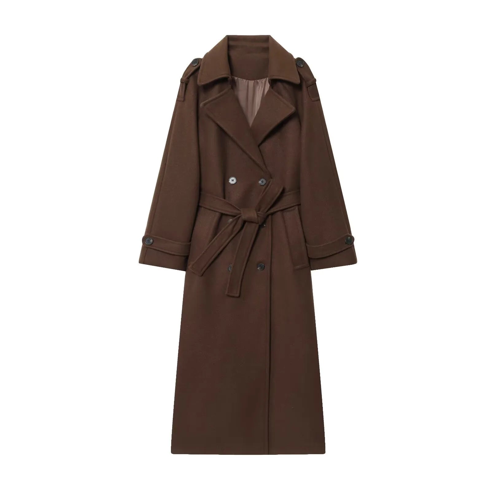 This structured overcoat combines the timeless silhouette of a trench with the substantial look of a winter coat. Featuring a classic double-breasted front and a self-tie waist belt, it offers a tailored fit that defines the silhouette. The design includes military-inspired details such as shoulder epaulets and cuff straps, adding a touch of sophistication to the minimalist aesthetic.